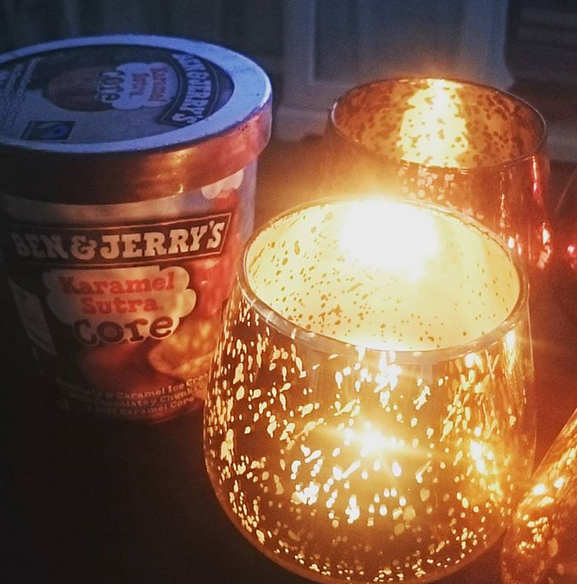 Det mysiga med hösten är ju att man kan tända massa ljus och kolla på film utan att känna dåligt samvete över att man borde vara ute i det fina vädret. Så det har jag gjort denna helg samt försökt kurera mig så gott det går, då helst med världens godaste glass 🙂