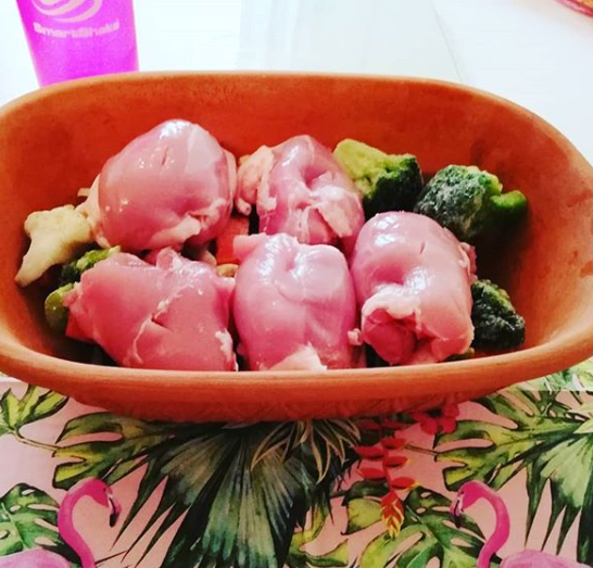 Jag tillagade kyckling på en bädd av wok grönsaker och kryddade. Toppade det hela med lite fetaost. In i ugnen på 225 grader i en och en halv timme.
